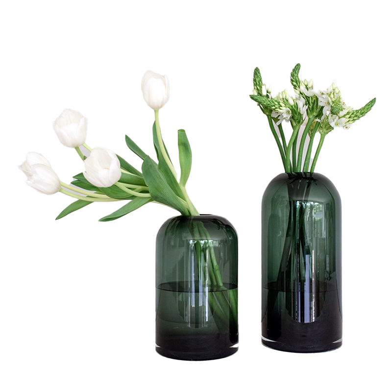 Black Glass Vase + Flowers