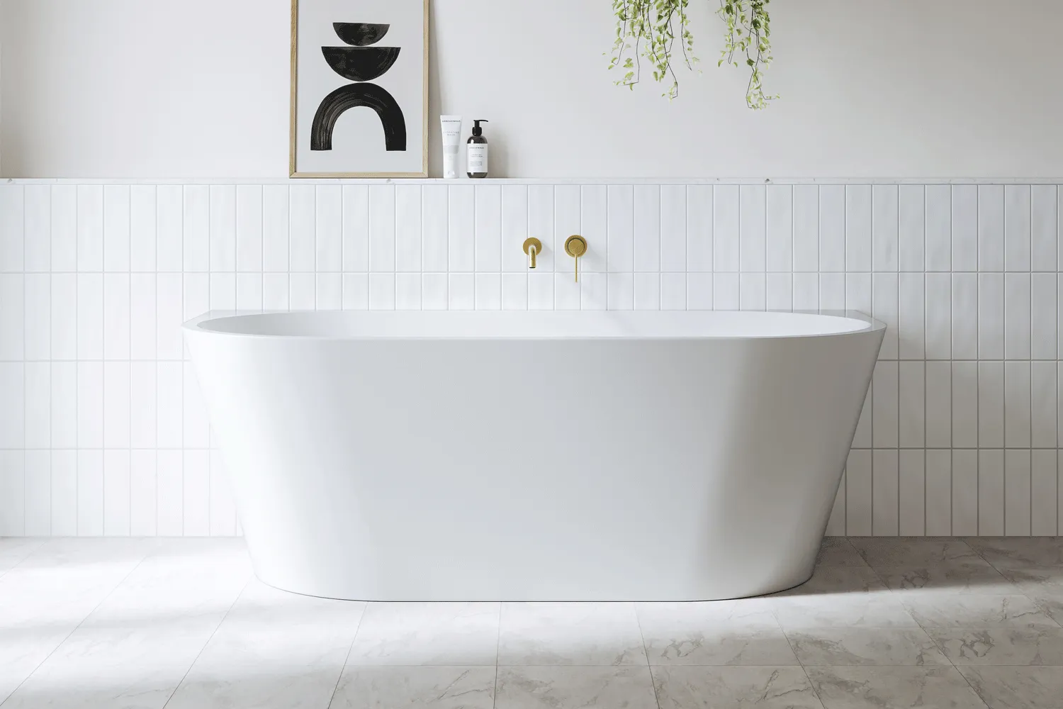 Mood board pairing idea: layer your tiles with natural linen textures, brass fixtures, and greenery for a bathroom that feels serene yet alive.
