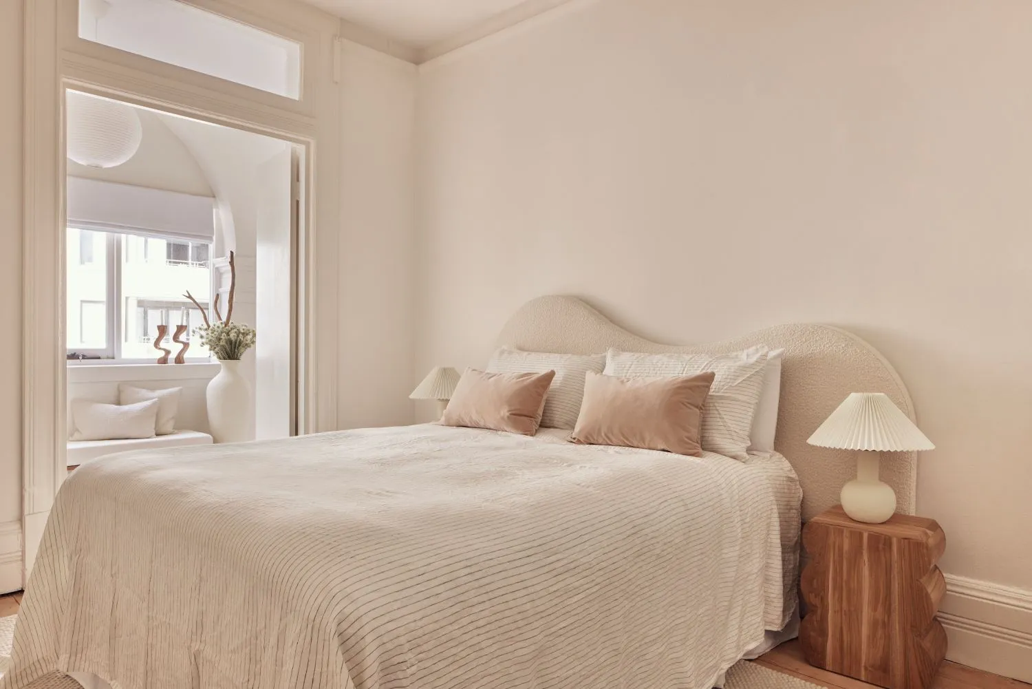 Style the Asiatic Horizon Clay Rug by Unitex, the Easton Arch Table Lamp by GlobeWest, or the Muse Tropea Palm Embroidered Cushion by Pillow Talk for some clay accessories that layer the space.