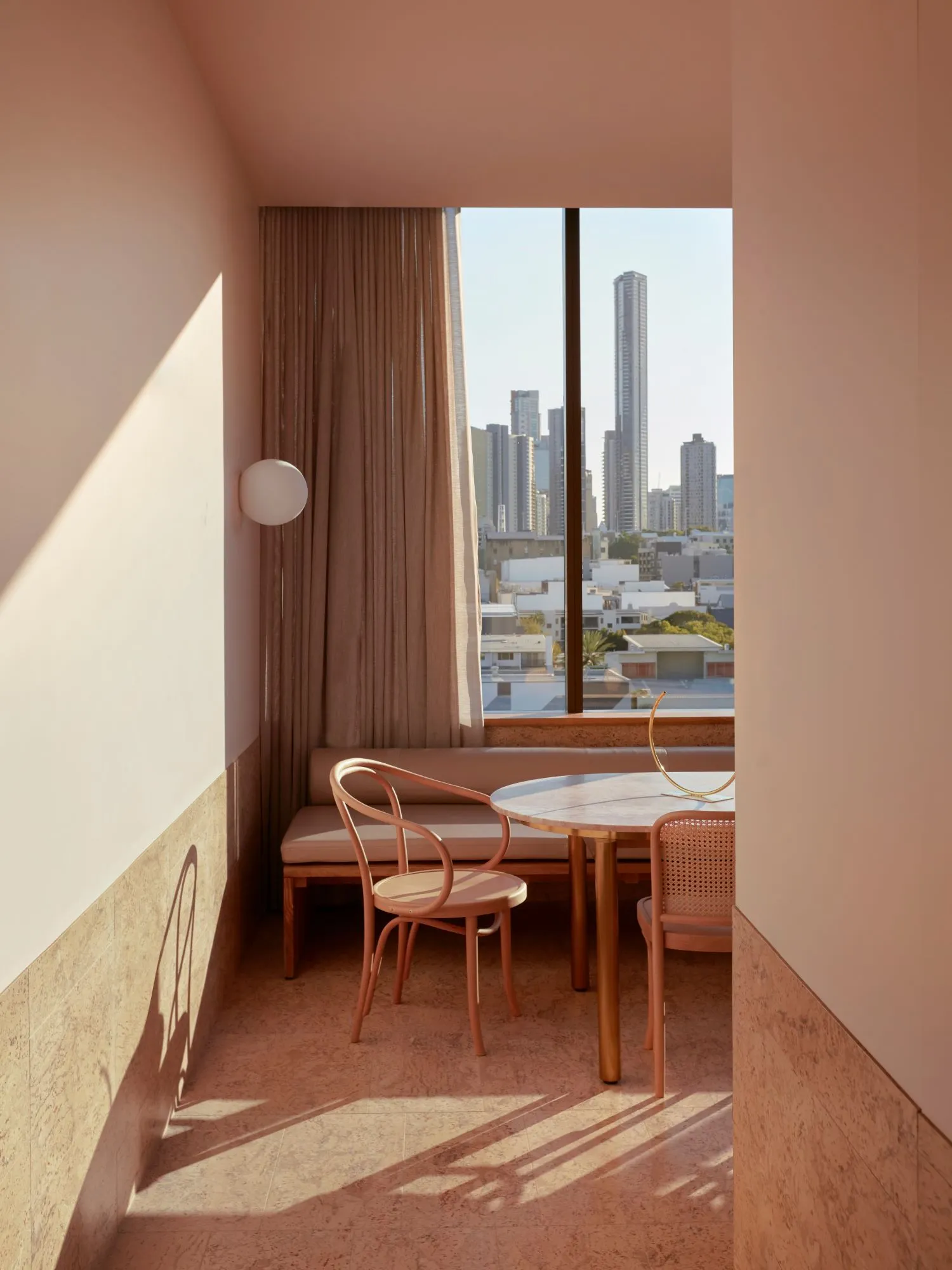 Design tip: Balance clay with lighter, chalky neutrals to avoid visual heaviness. A warm white, sandy beige or creamy travertine finish will keep the palette feeling breathable and elevated.